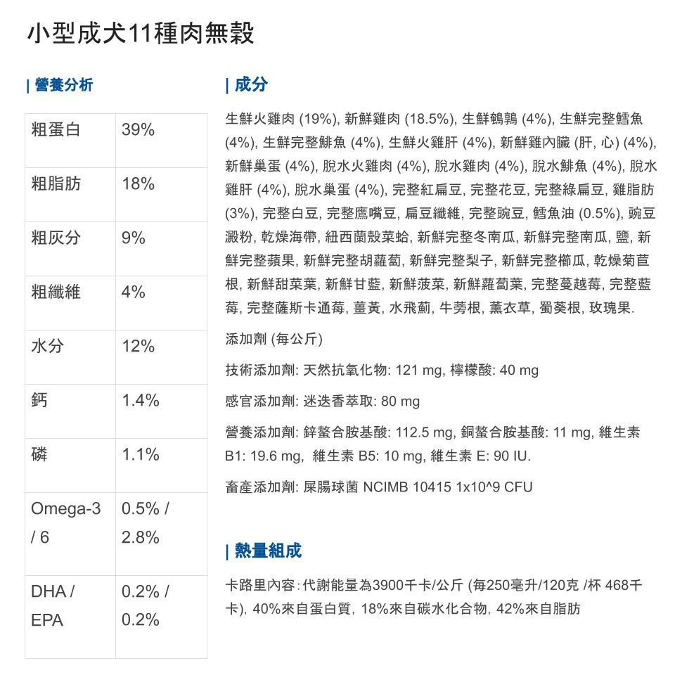 預購|歐睿健ORIJEN 無穀狗飼料 小型成犬11種肉 *活動到12/31,幸福喵喵行|寵物用品專賣店|貓狗飼料/罐罐/零食/保健品