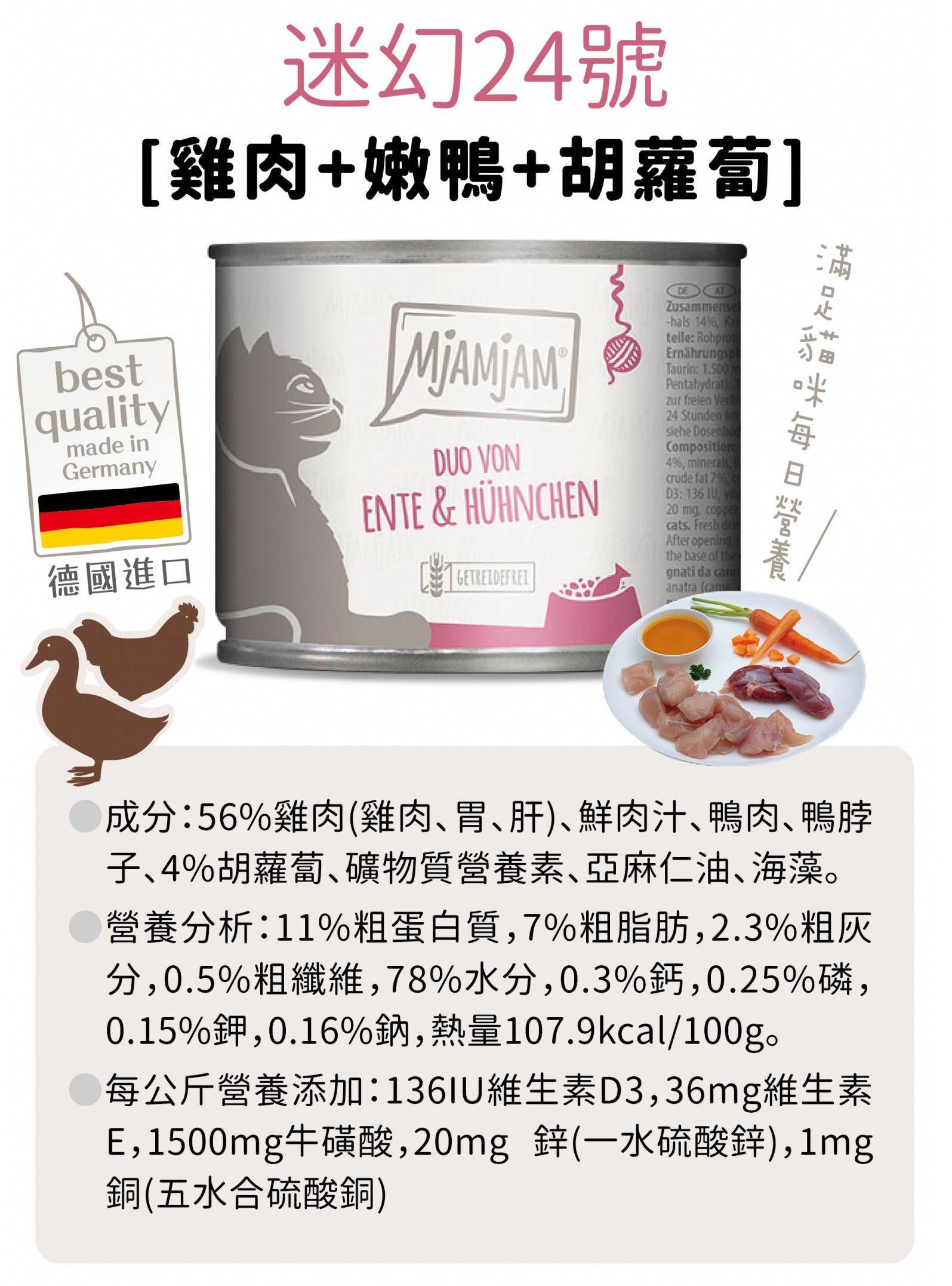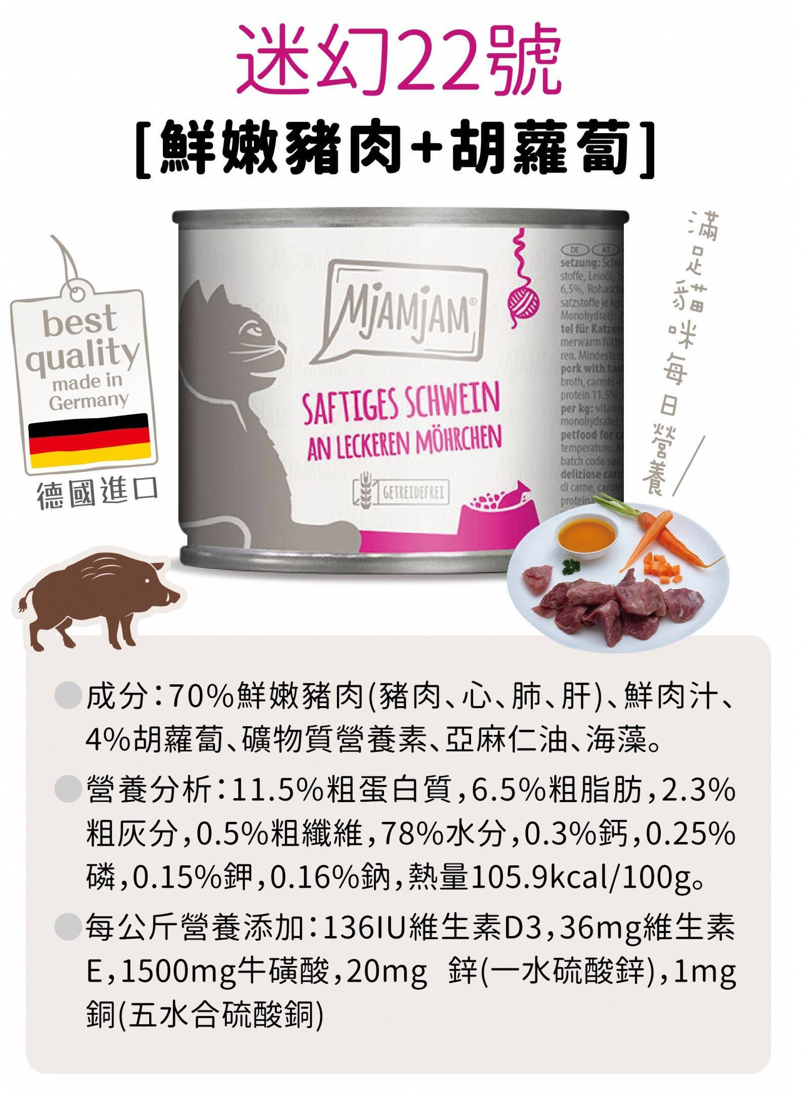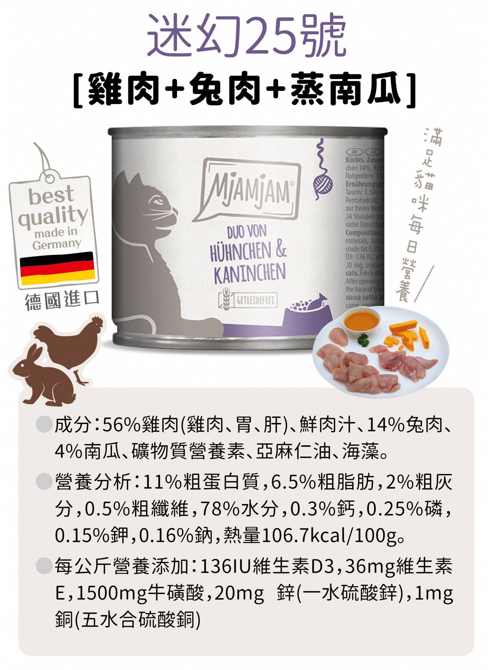 商品詳情 🌻無穀無麩質|豐富牛磺酸|超高肉含量|德國進口 🚚 寄送重量限制 超重麻煩請拆單下!! 德國迷幻喵 MjAMjAM 鮮肉主食罐 400g TWD $75 ~ 140 TWD$ 75 ~ 140