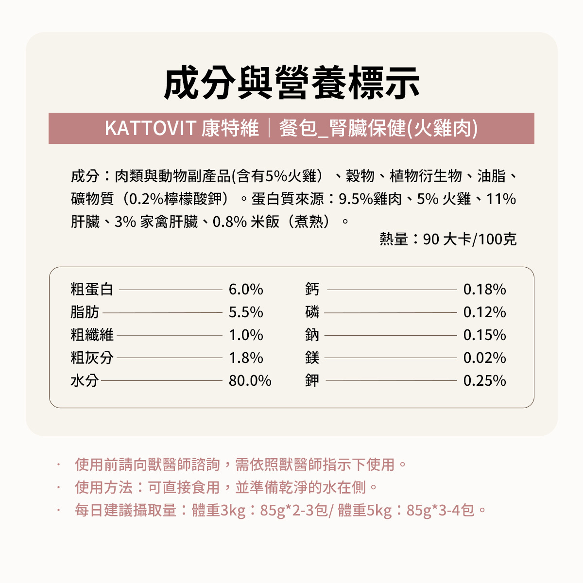 每日建議攝取量:體重3kg:85g*2-3包/ 體重5kg:85g*3-4包。