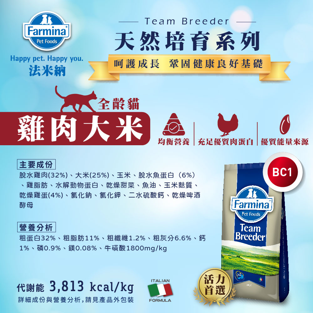 【法米納】貓咪 一般飼料 低穀 BC1 有穀全齡貓 雞肉大米,幸福喵喵行|寵物用品專賣店|貓狗飼料/罐罐/零食/保健品