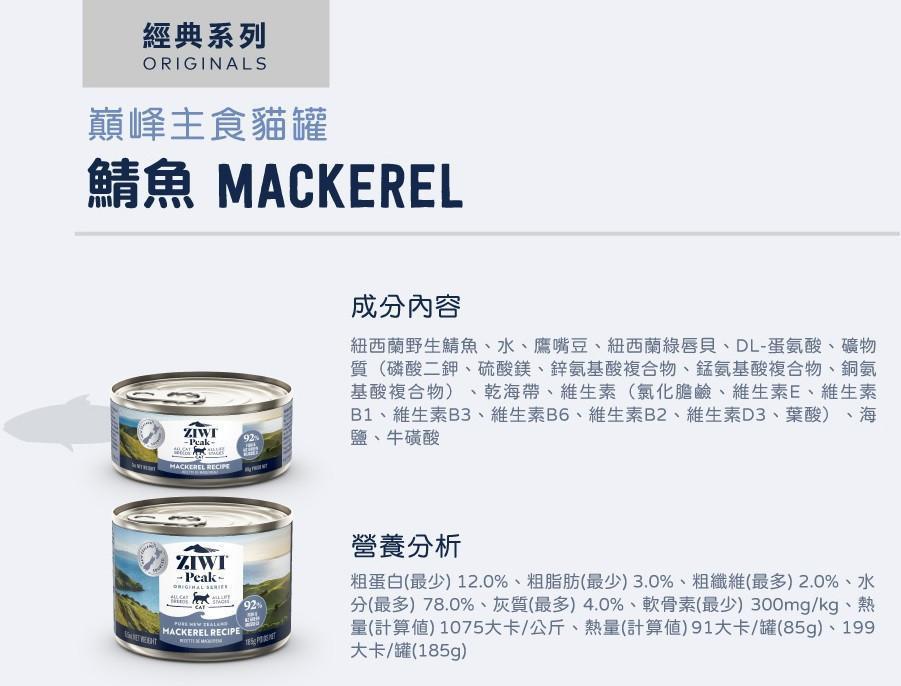商品詳情 92%超高含肉量無穀、無膠、無人工添加物罐頭不含有毒雙酚A營養標示項目符合AAFCO各年齡層貓咪營養標準 【ZIWI 巔峰】 貓咪 經典鮮肉主食罐 85G (小罐) TWD $2,640 ~ 3,000 TWD $2,640 ~ 3,000