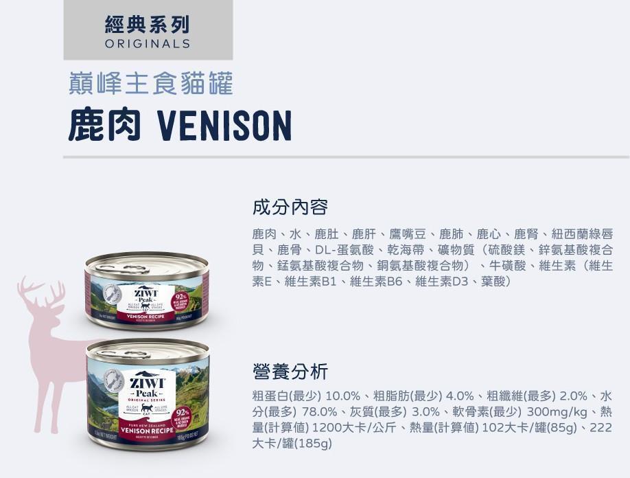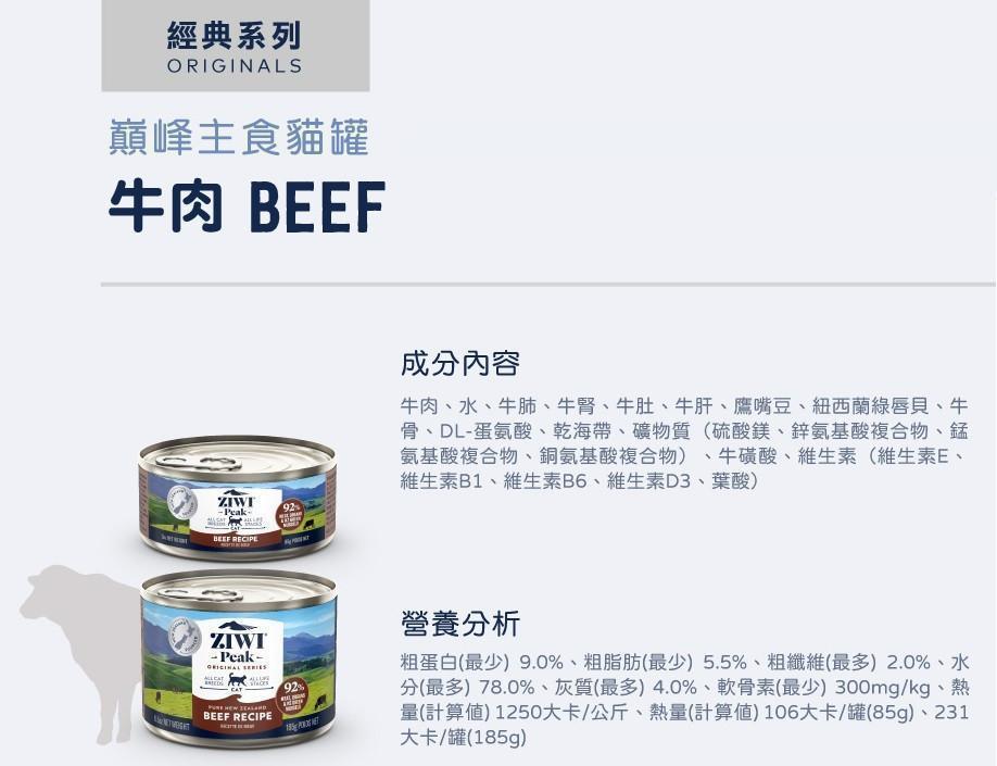 商品詳情 92%超高含肉量無穀、無膠、無人工添加物罐頭不含有毒雙酚A營養標示項目符合AAFCO各年齡層貓咪營養標準 【ZIWI 巔峰】 貓咪 經典鮮肉主食罐 185G (大罐) TWD $145 ~ 2,040 TWD $145 ~ 2,040
