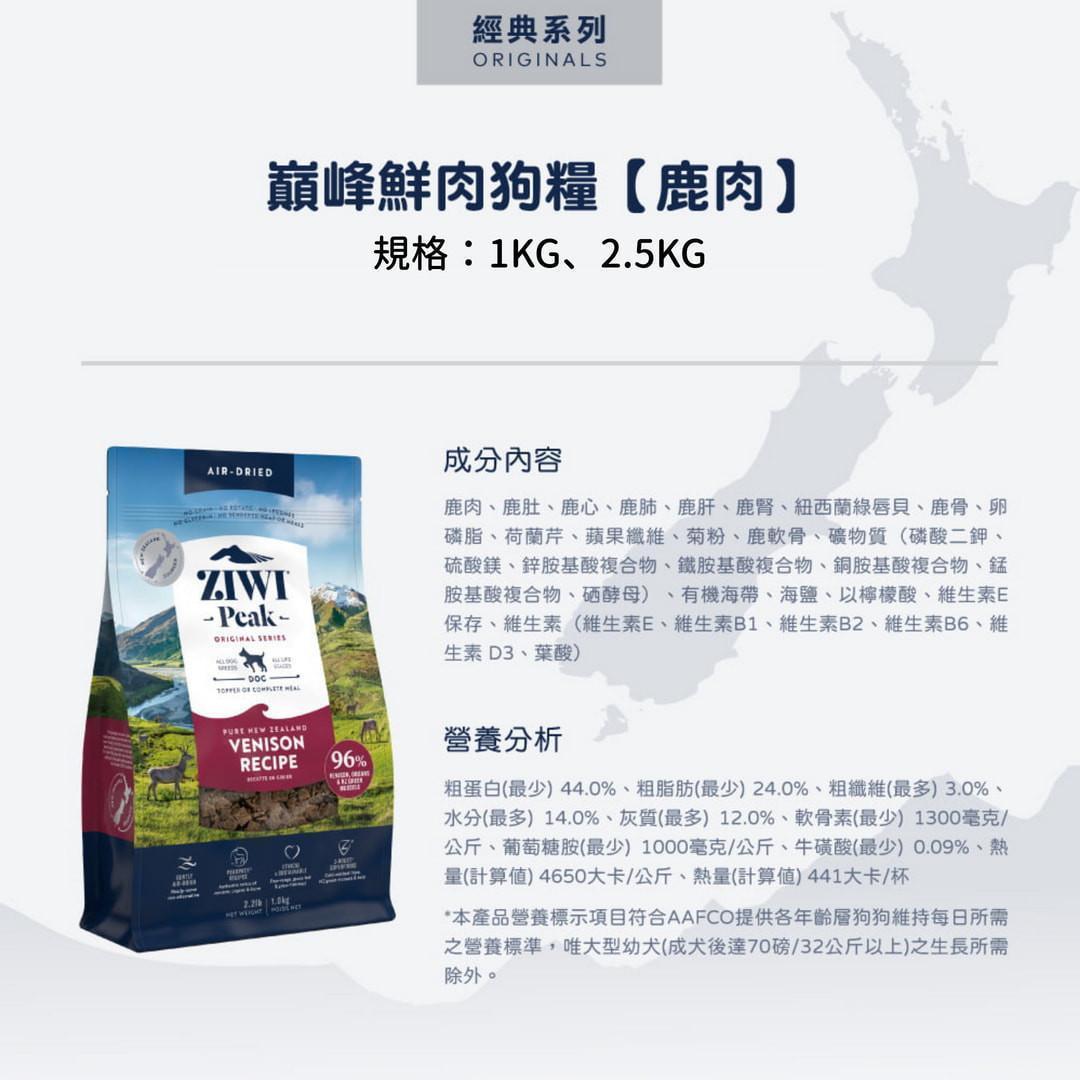 【ZIWI 巔峰】 狗狗 經典鮮肉糧(肉片)鹿肉,幸福喵喵行|寵物用品專賣店|貓狗飼料/罐罐/零食/保健品