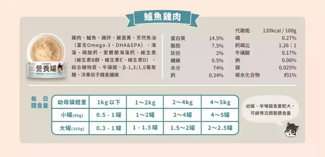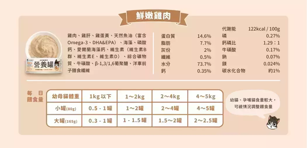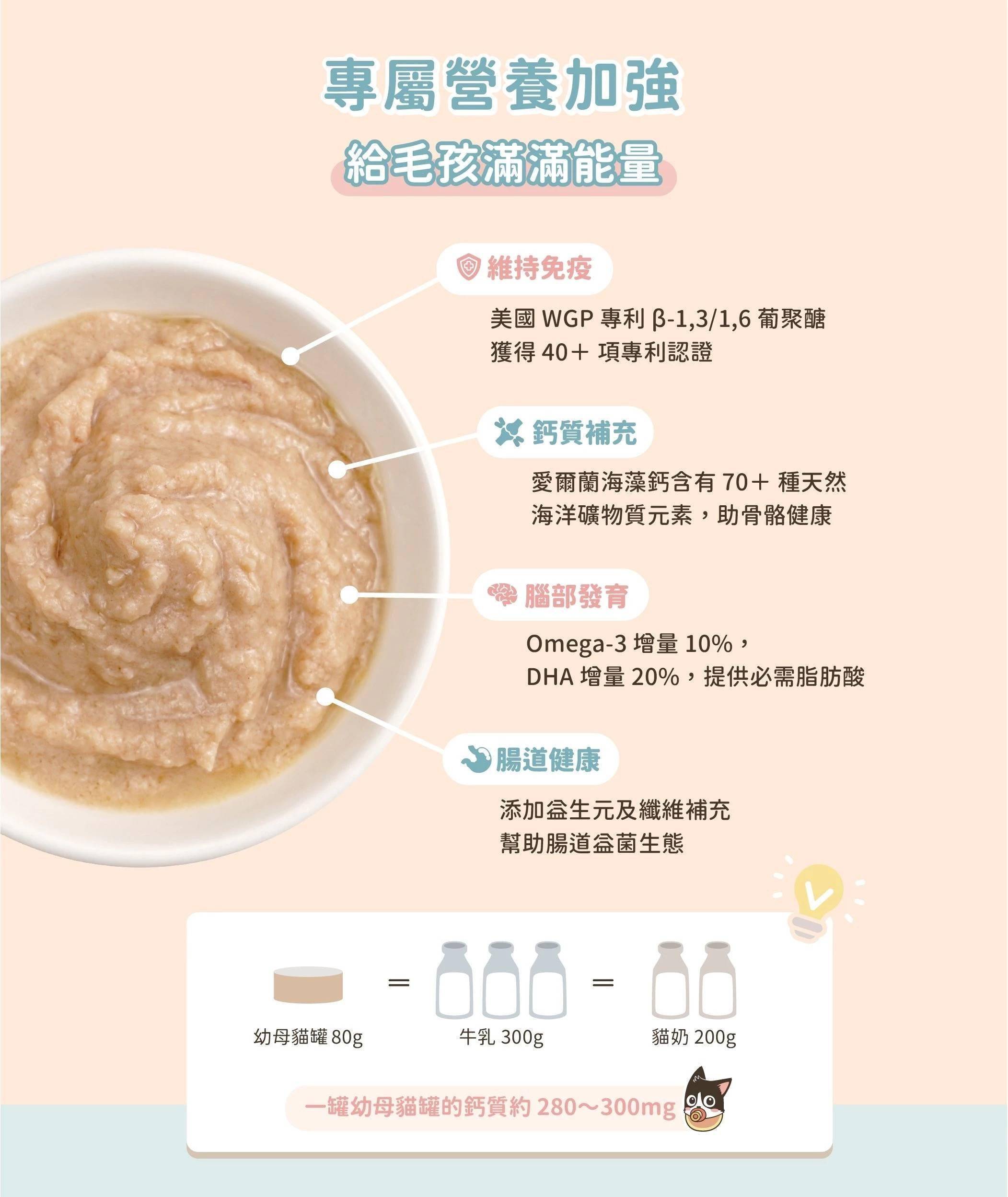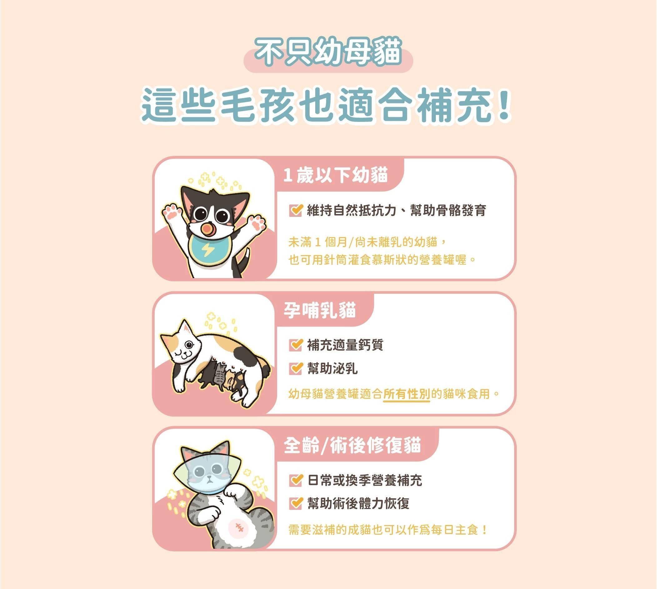 適合「幼貓、孕貓、哺乳貓、術後貓」作為營養補充: