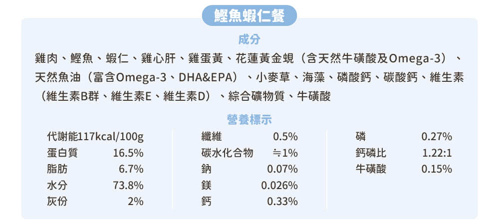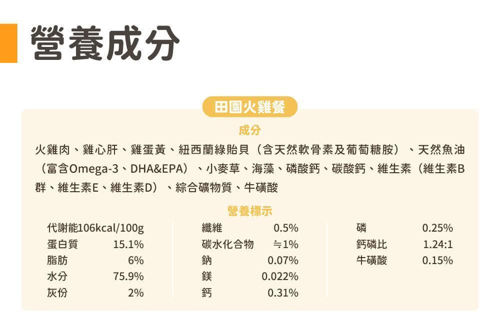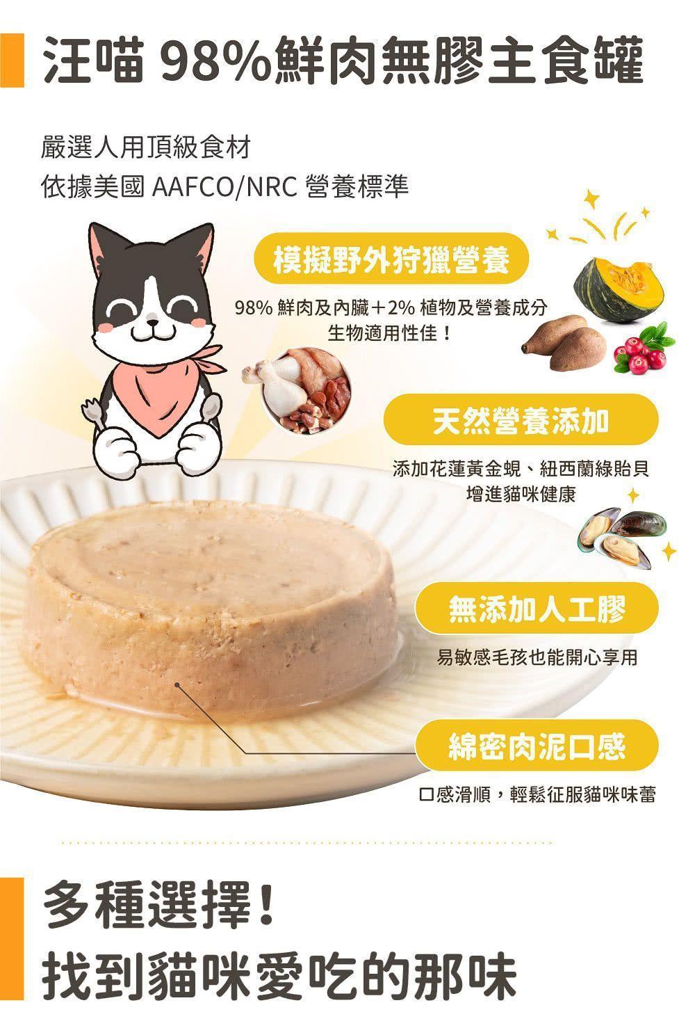 商品詳情 模擬貓咪野外狩獵營養! • 無膠貓咪主食罐• 用嬰兒食品的標準對待每一個罐罐• 98% 鮮肉及內臟+2% 植物與必需營養素• 嚴選頂級食材、產地溯源• 完全無人工膠類、防腐劑等不良添加物 【汪喵星球】貓咪 98%鮮肉主食罐 165G TWD $770 ~ 830 TWD $770 ~ 830