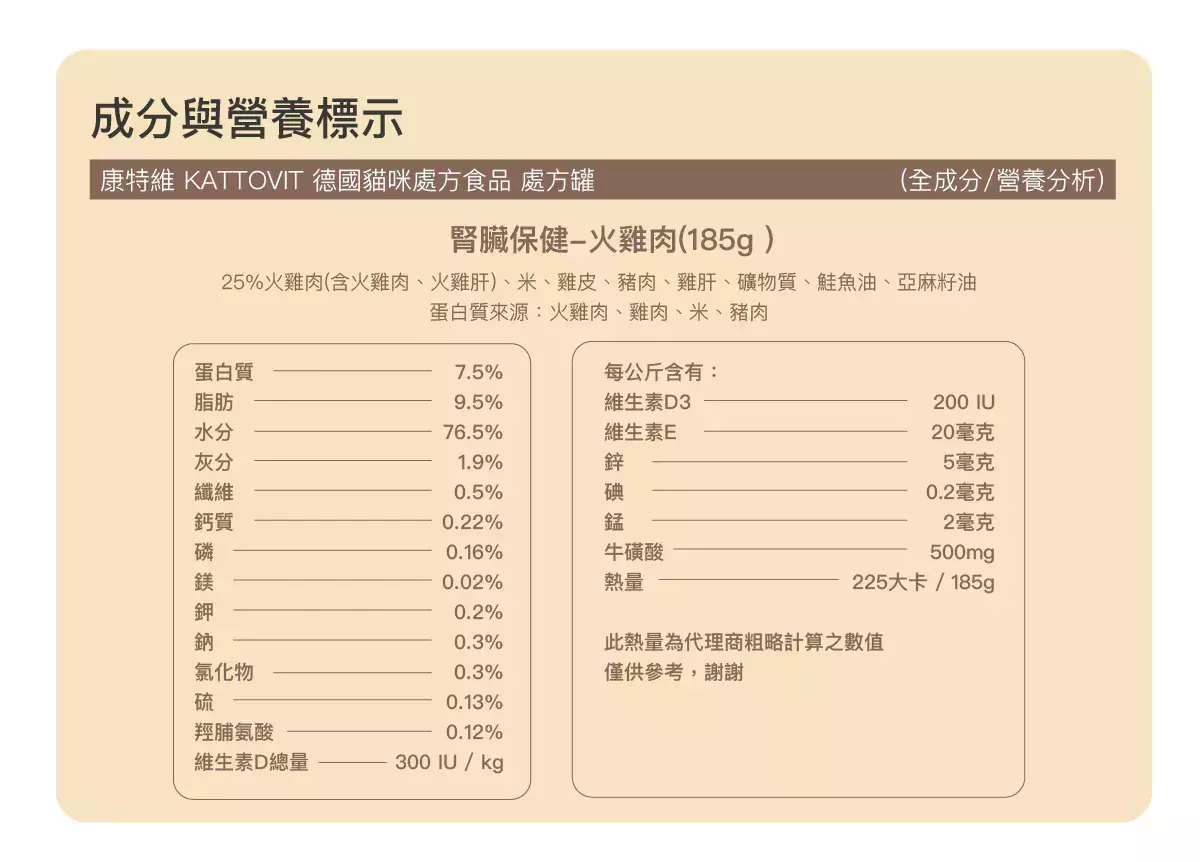 【康特維】貓咪 處方罐頭 腎臟保健 火雞肉 185G,幸福喵喵行|寵物用品專賣店|貓狗飼料/罐罐/零食/保健品