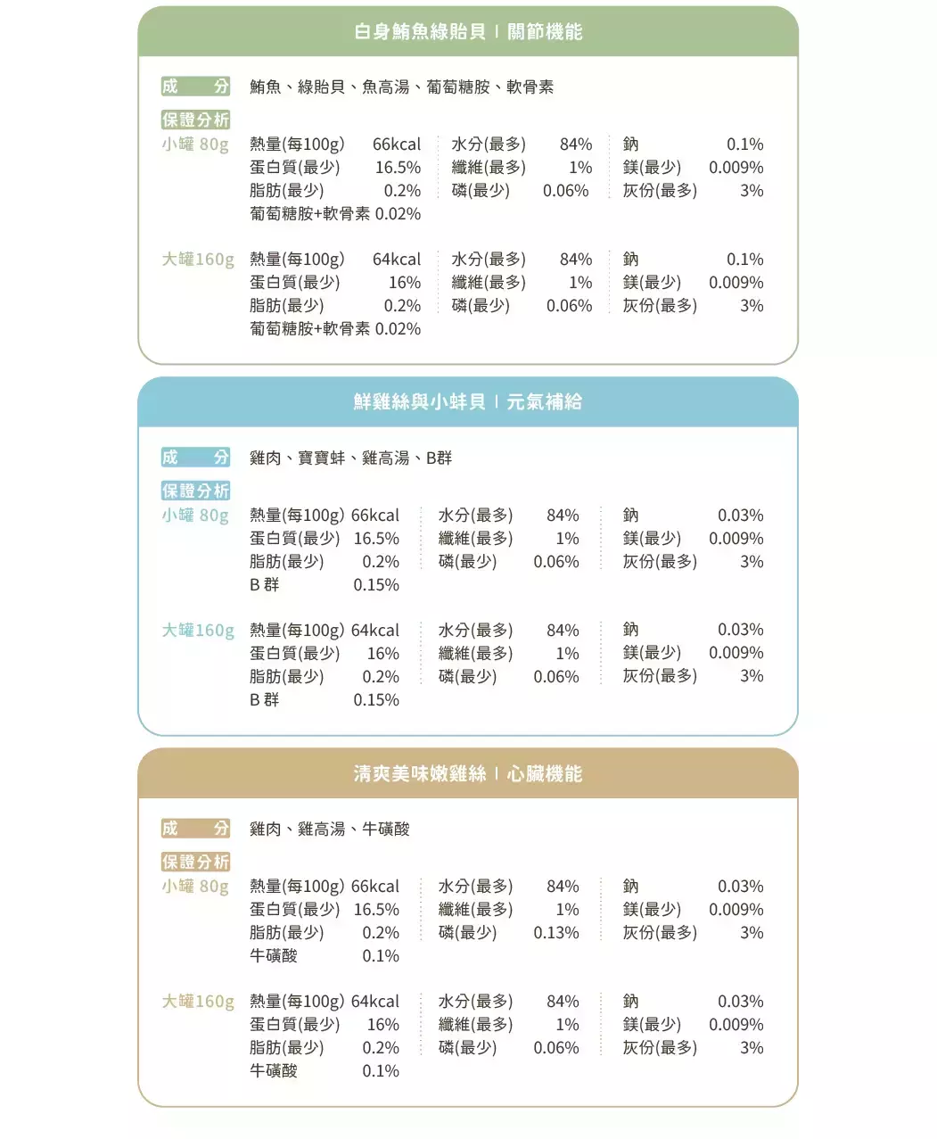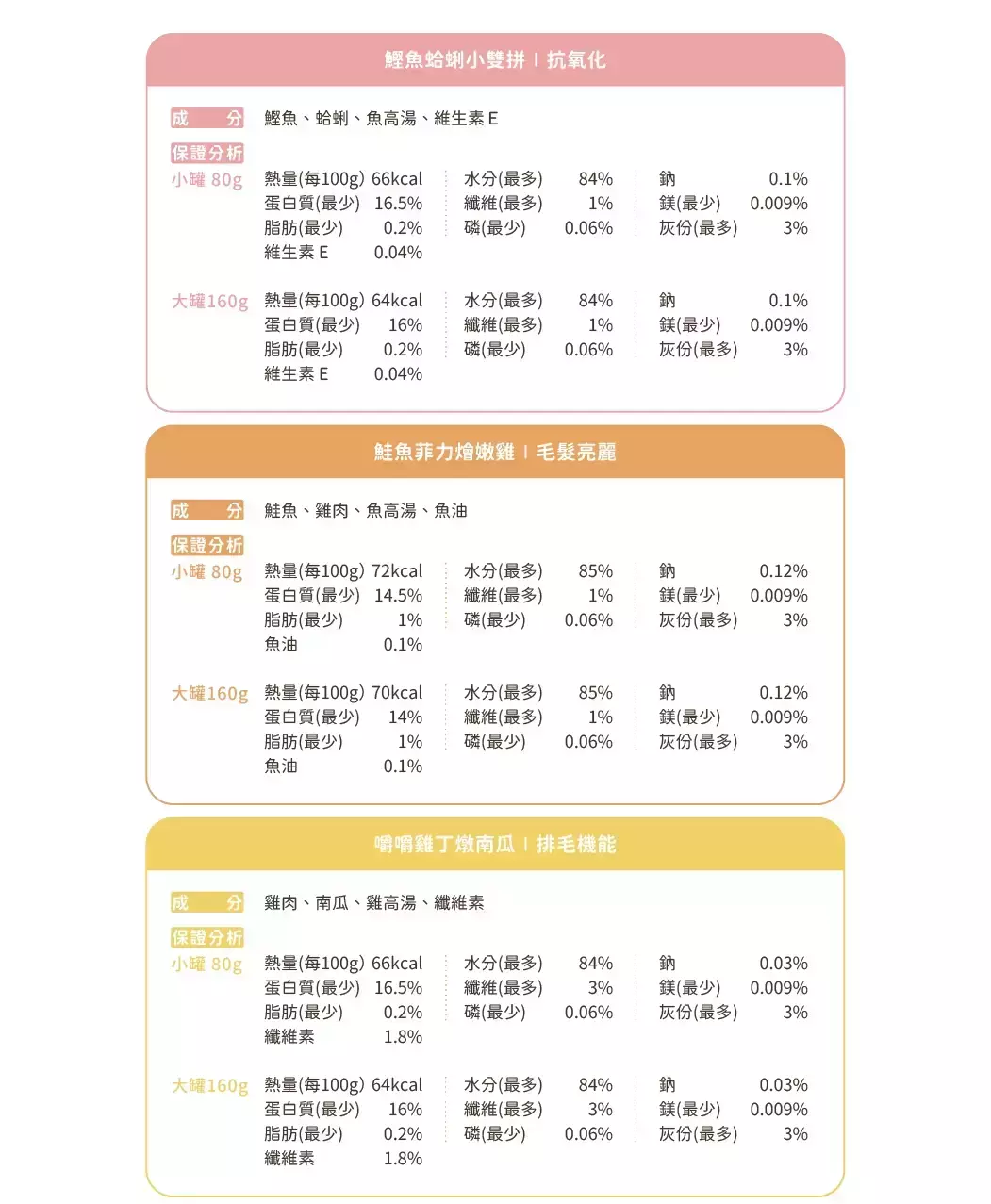 商品詳情 無膠+肉超多!CP 值最高副食罐 • 真材實料,完全無人工膠類 • 滿滿原肉+營養機能 plus,好吃又營養 ☑產品為副食罐。適用成幼貓,如果狗狗喜歡也可以吃唷! 原產地:泰國 【汪喵星球】貓犬 無膠點心罐 80G TWD $570 TWD $570