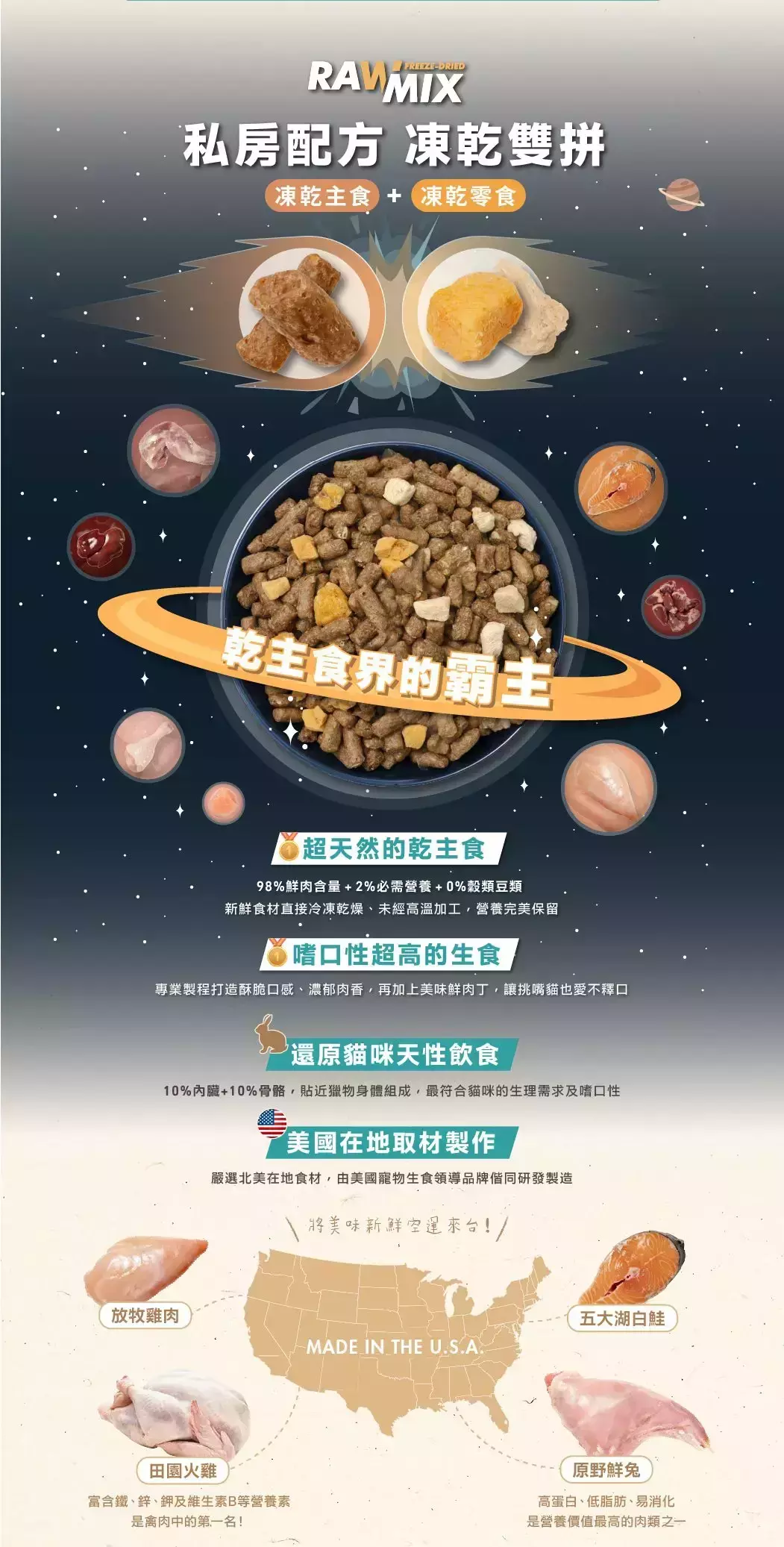 台灣製 低溫慢烘 內臟比 2% 口感較酥、扎實 鮮肉烘烤後的濃郁香氣 |