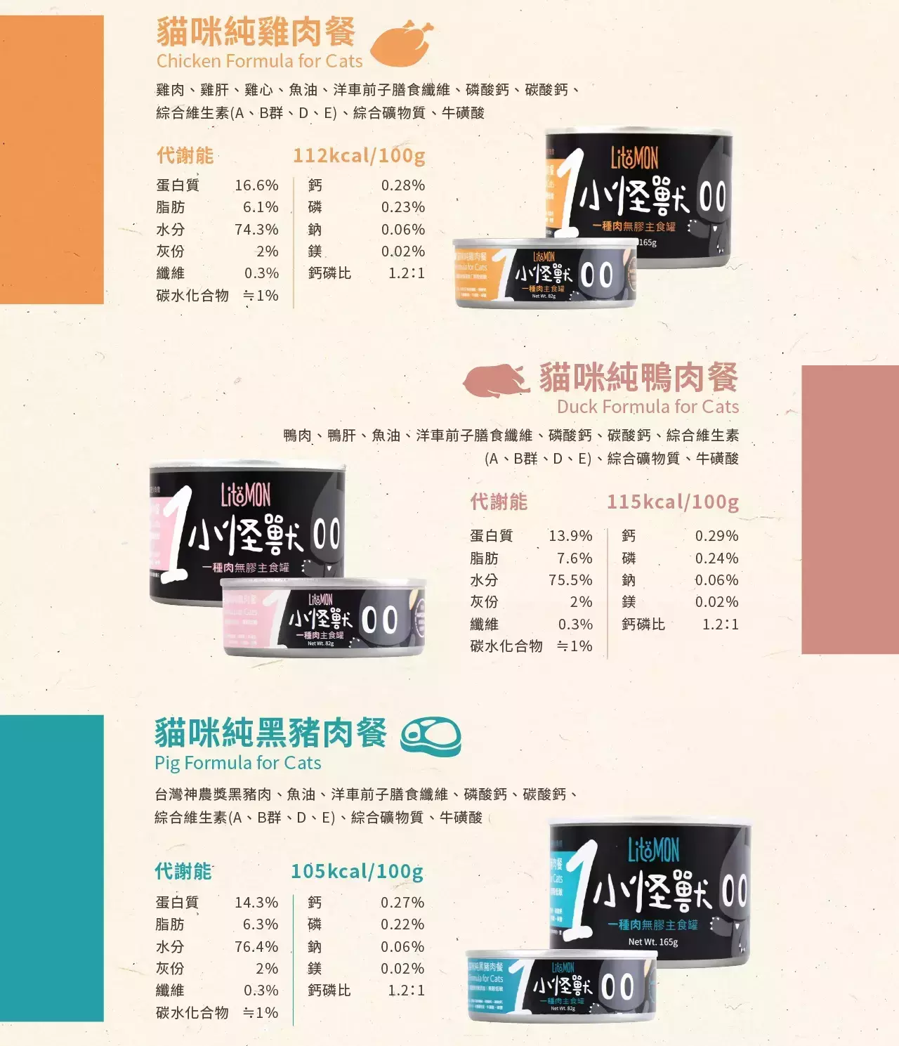 商品詳情 單一肉源,低敏主食首選 簡化成分、嚴選優質食材,給貓咪真實營養! 特別適合 V 幼貓 V 腸胃敏感貓 【怪獸部落】貓咪 1種肉低敏無膠主食罐 82G TWD $950 ~ 1,020 TWD $950 ~ 1,020